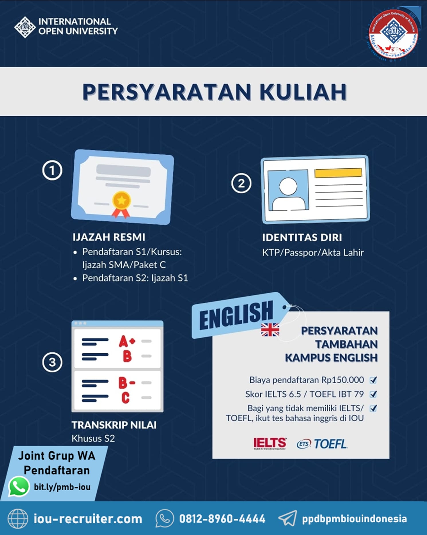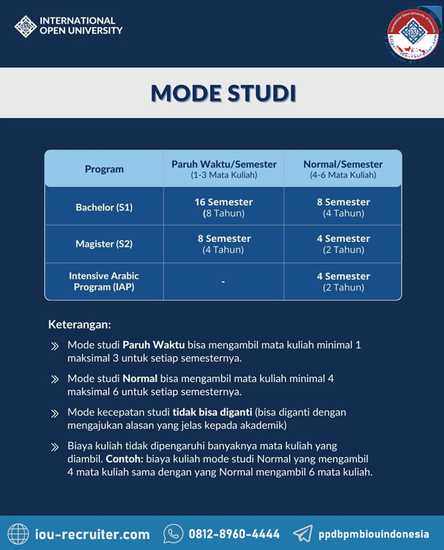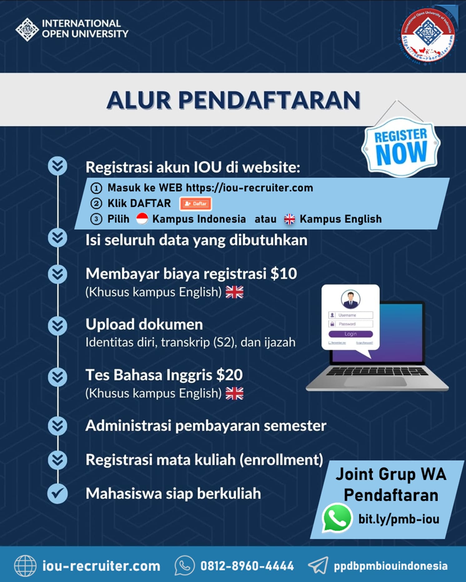 Website Resmi Penerimaan Mahasiswa Baru dari International Open University (IOU) Gambia, untuk Peserta Didik yang ingin kuliah secara Online yang berada di Indonesia.